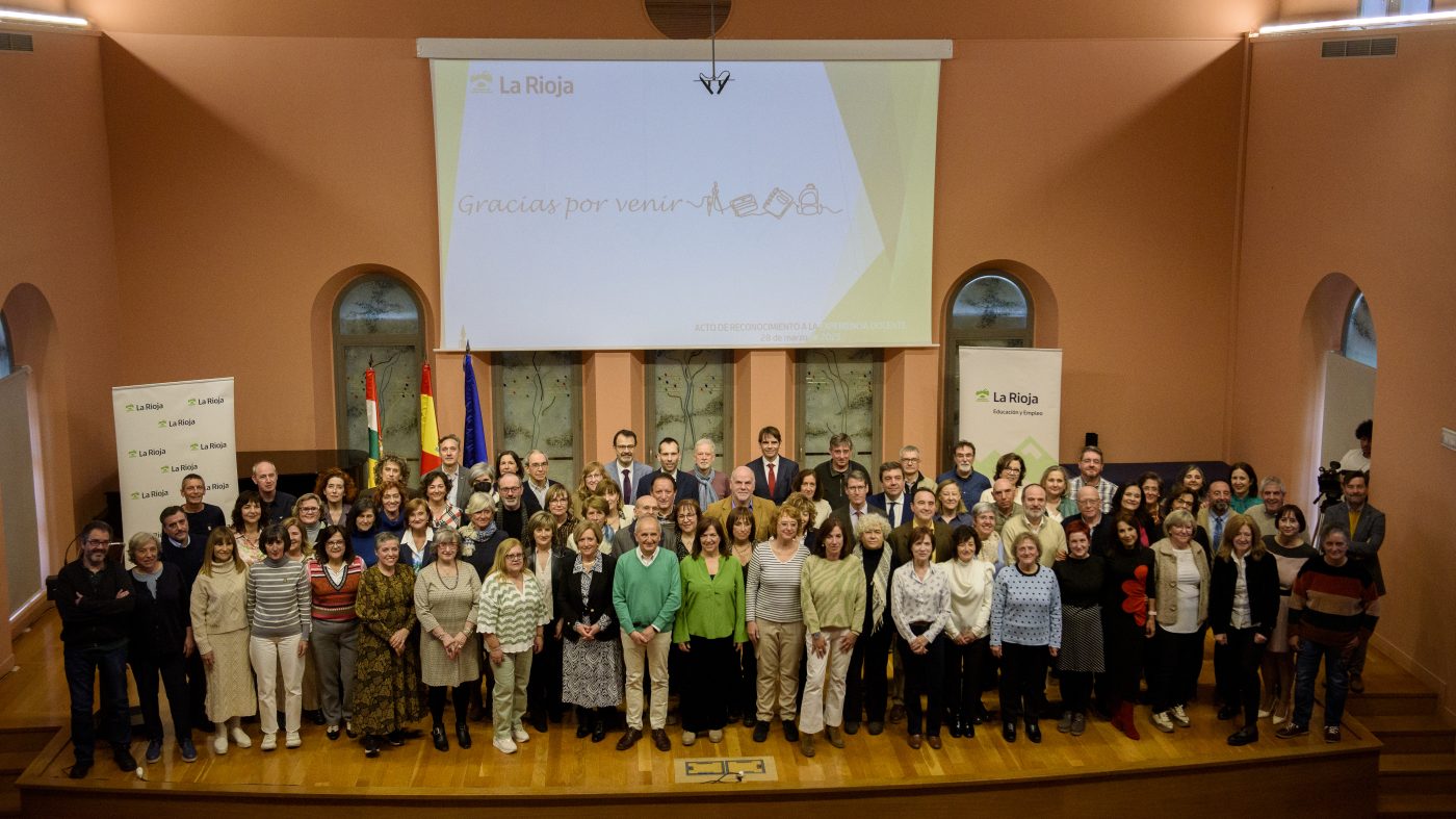 El presidente del Gobierno de La Rioja, Gonzalo Capellán, ha participado hoy, 28 de marzo, en el acto de Reconocimiento de la Experiencia Docente, donde ha reconocido y agradecido el trabajo y dedicación de los 112 docentes de distintos centros públicos riojanos que se han jubilado en el último año. “La experiencia docente no se pierde, sino que se acumula, como todo conocimiento”, por lo que ha asegurado que “los docentes que siguen en las aulas, con vuestro aprendizaje, trabajo y esfuerzo seguirán construyendo un sistema educativo y, por tanto, una sociedad mejor”.