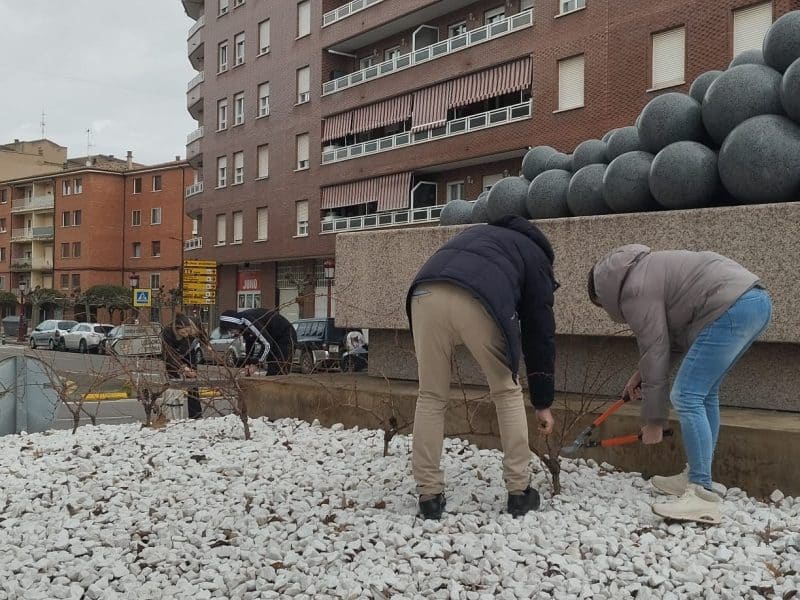 Por segundo año consecutivo han llevado a cabo trabajos de poda en las vides situadas en diferentes rotondas de la ciudad jarrera