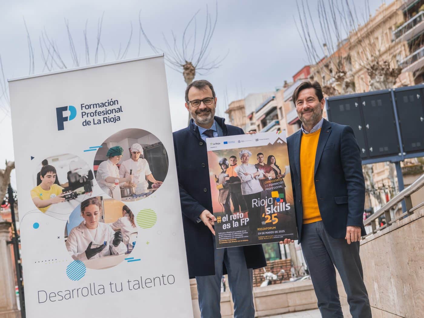 El viceconsejero de Educación, Universidades y Formación Profesional, Miguel Ángel Fernández, y el director general de Formación Profesional, Daniel Marín, han presentado la nueva edición del campeonato regional de FP Riojaskills 2025, que se celebrará el próximo 19 de marzo en el Palacio de Congresos Riojaforum. Una competición bienal en la que este año participarán 109 estudiantes, junto con 52 docentes, de 19 centros educativos de La Rioja, donde medirán sus habilidades y mostrarán sus capacidades para resolver distintas pruebas relacionadas con su futuro profesional.