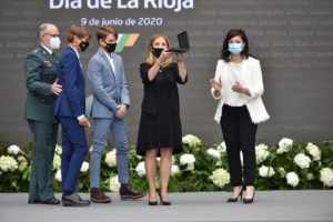 La particular celebración del acto institucional, con motivo de la emergencia sanitaria por la COVID-19, ha servido para entregar la Medalla de La Rioja 2020 a los profesionales sanitarios y el galardón de Riojano de Honor al teniente coronel Jesús Gayoso, a título póstumo