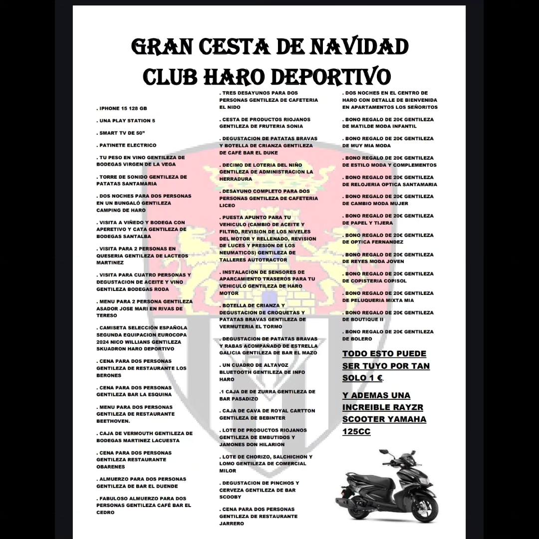 Estás leyendo: El Haro Deportivo pone a la venta los boletos de la Gran Cesta de Navidad: una scooter y mucho más