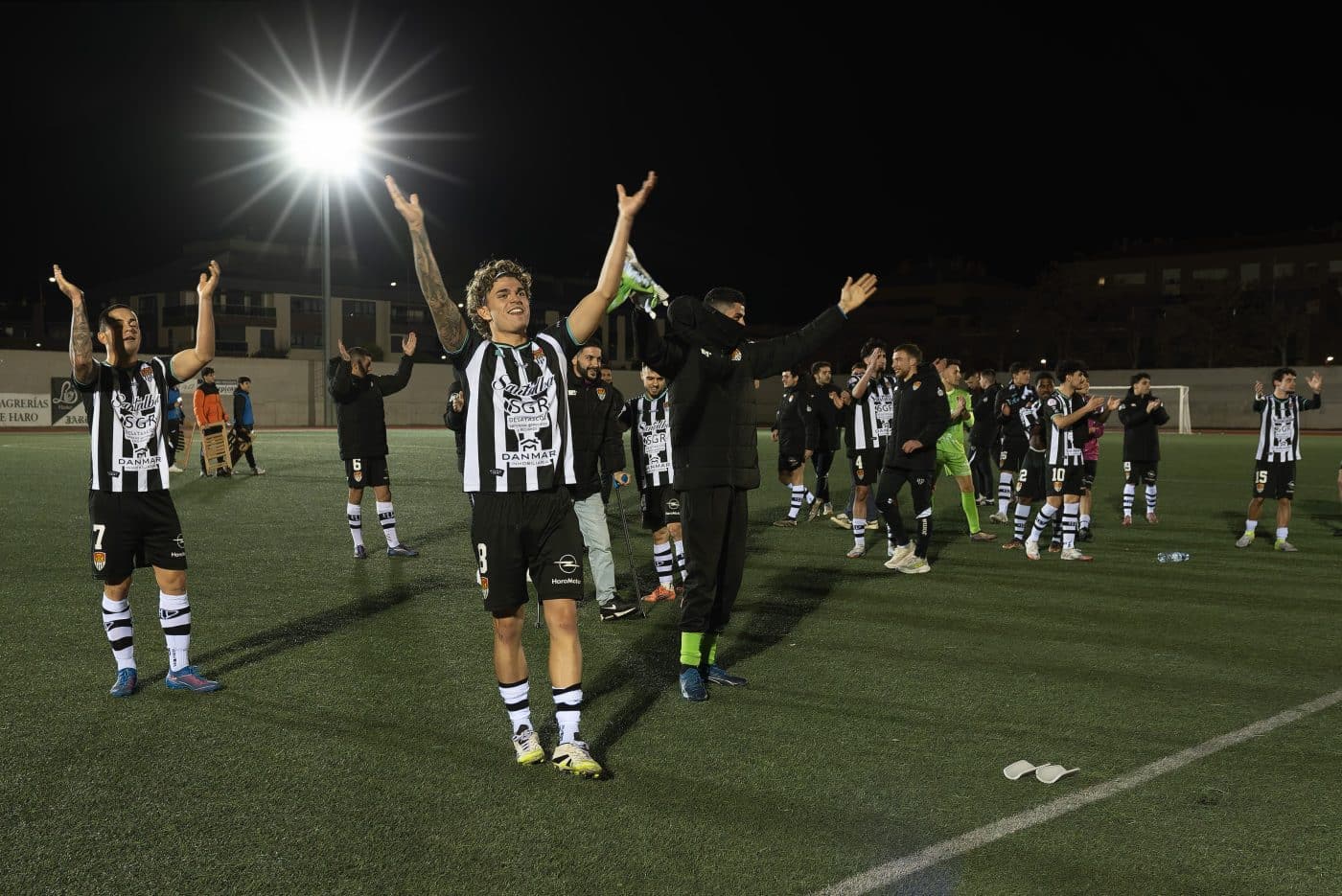 Con todo, el primer gol llegaría finalmente en el minuto 73, obra de Aitor ‘Zunzu’, desatascando el encuentro. Cuatro minutos después, en el 77, Aitor Moreno lograría firmar el 2-0 con un tiro raso desde la derecha al segundo palo. Con el marcador a favor del Haro, los blanquinegros pisaron el acelerador y se mostraron superiores. Y ‘Zunzu’ volvería a marcar en el 88, rematando un centro desde la derecha para certificar el definitivo 3-0. En el minuto 90 todavía hubo una nueva ocasión para el Haro, pero el partido finalizaría con el 3-0. Tras una primera fase muy espesa, los de Aitor Santurde consiguieron romper la resistencia visitante y resolvieron con claridad en el tramo final.