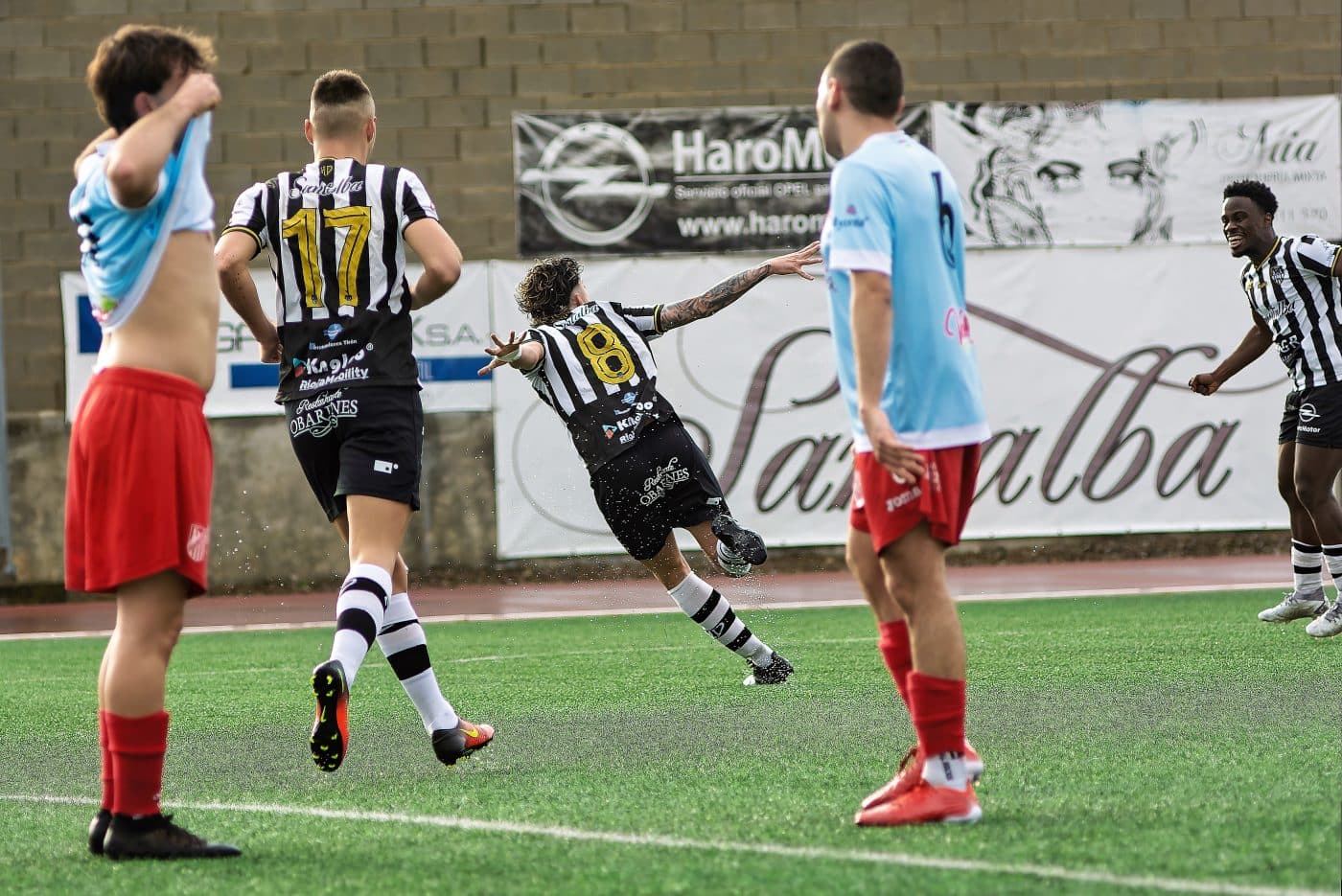 Pero el primer aviso lo daría el Haro pasado el primer cuarto de hora con un remate dentro del área de Kliti que repelió la defensa. Apenas cinco minutos después un buen centro desde banda zurda lo remató en el segundo palo Gorka Zunzunegui poniendo el primer gol del partido. Eran los mejores minutos del Haro y el equipo local los aprovecharon para llegar una y otra vez al área visitante.