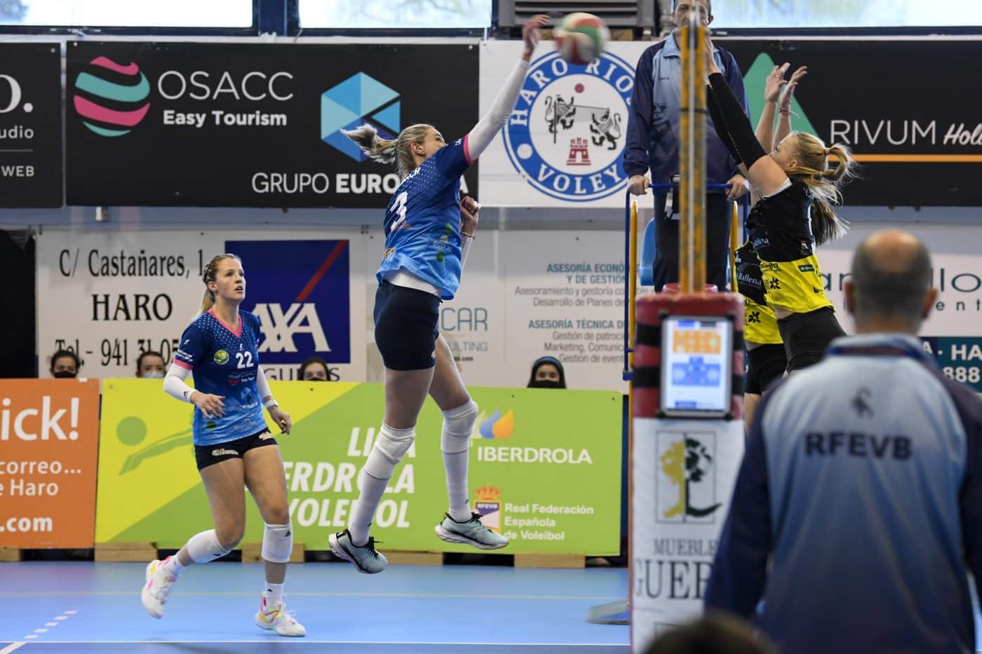 Así se encontró el Haro contra las cuerdas. Y las jugadoras de Esther López no consiguieron reconducir la tendencia del siguiente punto al moverse de nuevo en términos de igualdad, pero encima con cierta desventaja en el marcador. Al Sayre le bastaba con pasar la bola al otro lado de la red para que las azules arriesgasen.
