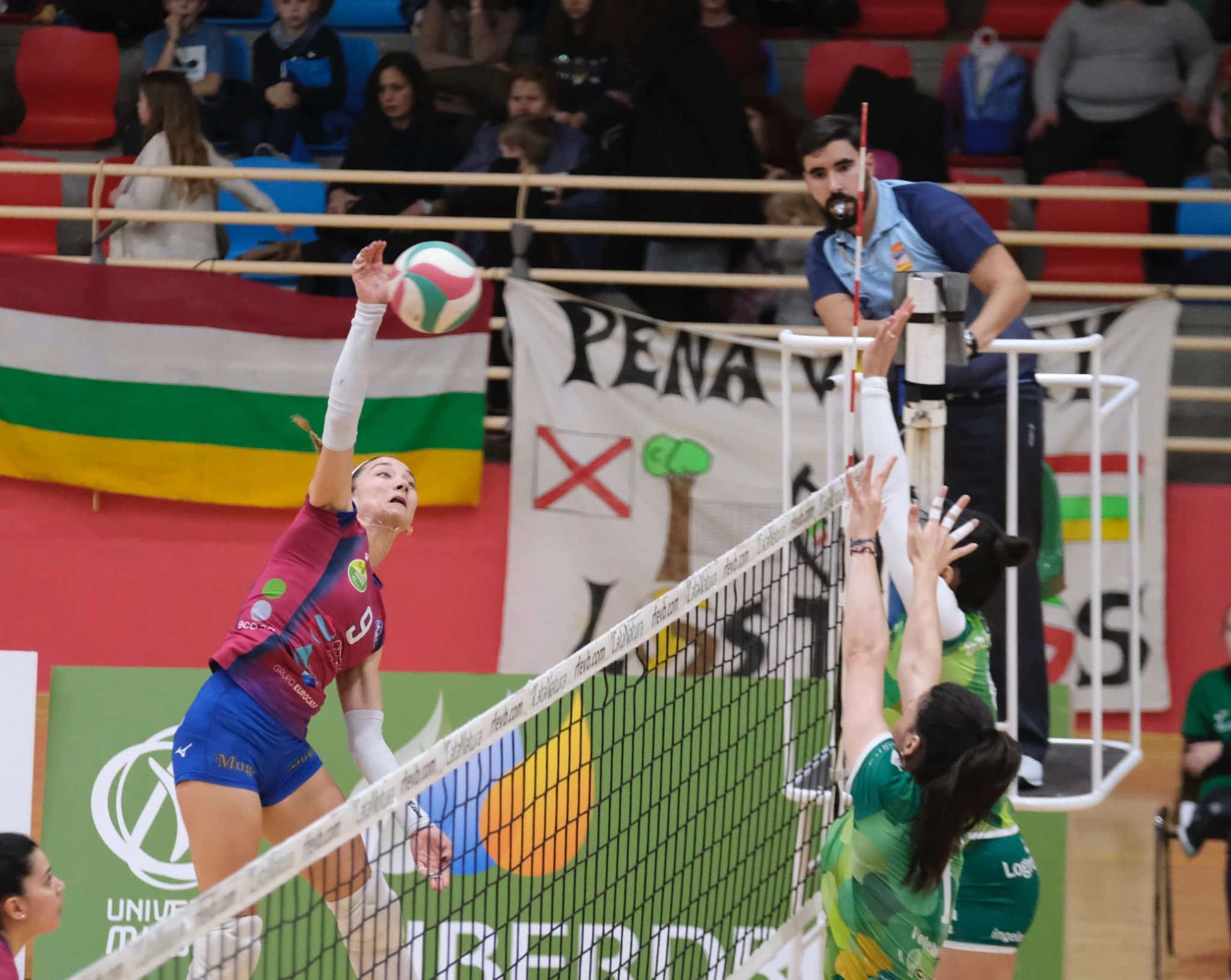 Con un buen bloqueo cerrado y buenos ataques, el May Deco Voleibol Logroño abría aún más distancia en el marcador. El equipo de Haro arriesgaba en el saque para intentar recuperar el terreno perdido, pero no fue el día de las azules, que cometieron demasiados errores y ante un equipo como Logroño se pagan caro.