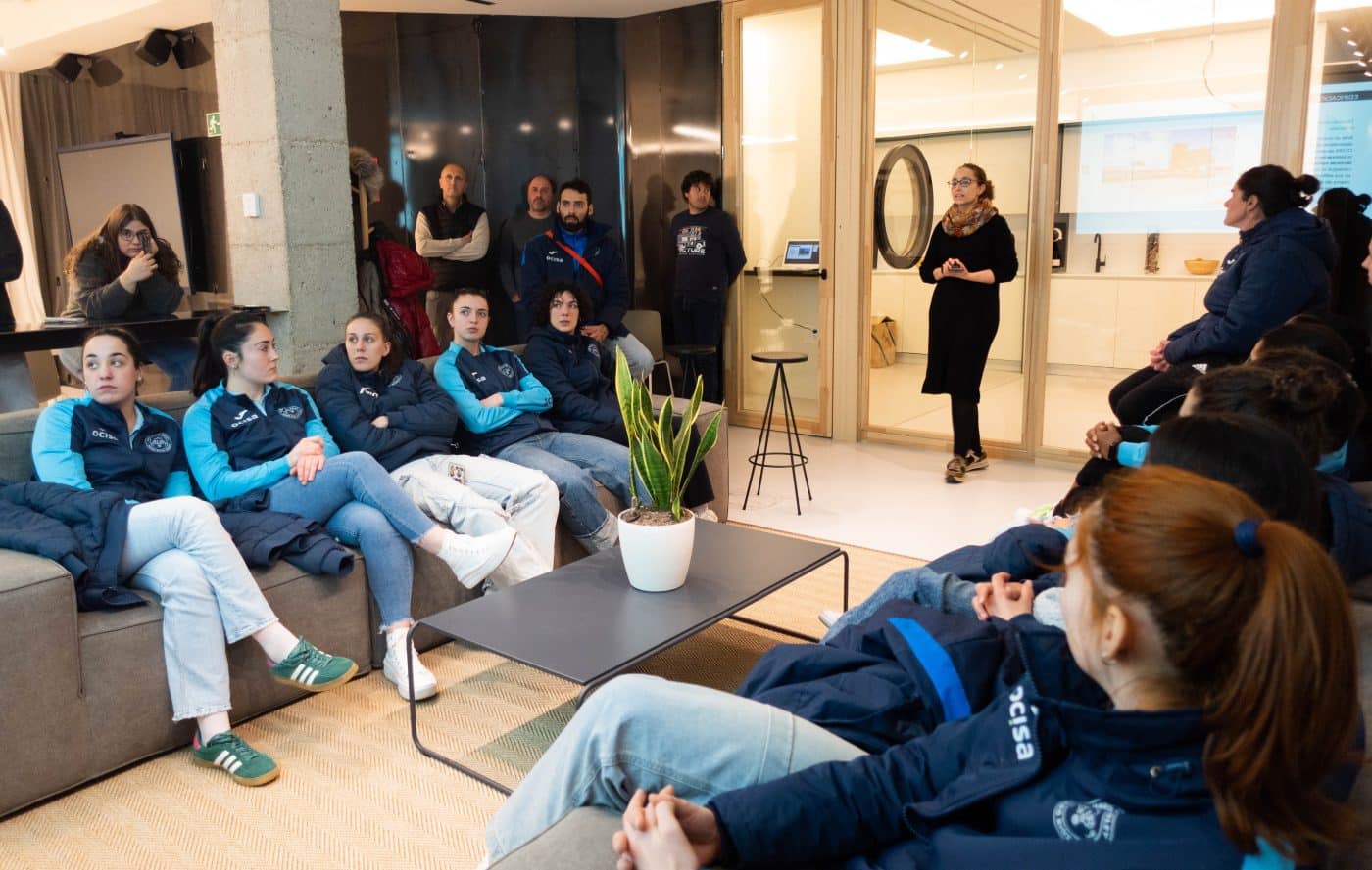 En esta ocasión, explicó a las jugadoras acompañadas por su entrenadora y segundo entrenador el funcionamiento de la empresa y algunas de las obras más emblemáticas que han realizado, como la rehabilitación del Monte Cantabria, la Ciudad Deportiva de la UD Logroñés y su especialidad en edificaciones ‘passivhaus’.