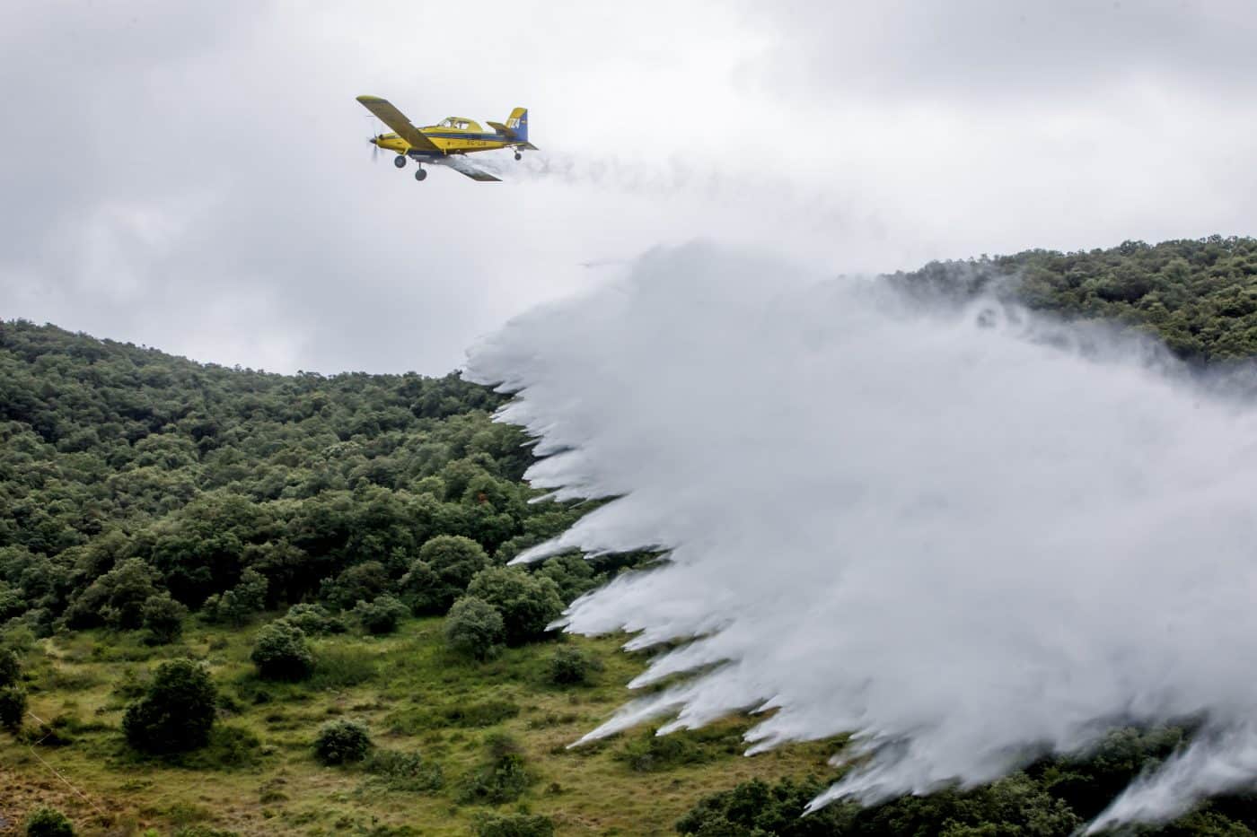 - 2 aviones de carga en tierra, tipo AT-802, con capacidad para 3.100 litros de agua y retardante, contratados por el Ministerio de Agricultura, Alimentación y Medio Ambiente. A los que van unidos 2 pilotos, 2 técnicos y un mecánico.