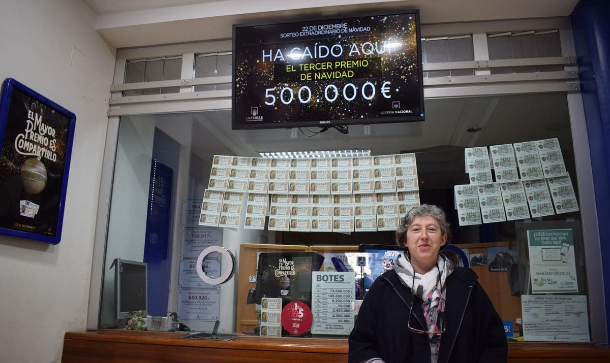 Si el año pasado tocó un quinto premio de la Lotería de Navidad en la Administración de Lotería Palacín, en la calle Virgen de la Vega de Haro, este año el premio ha sido aún mejor: un tercer premio.