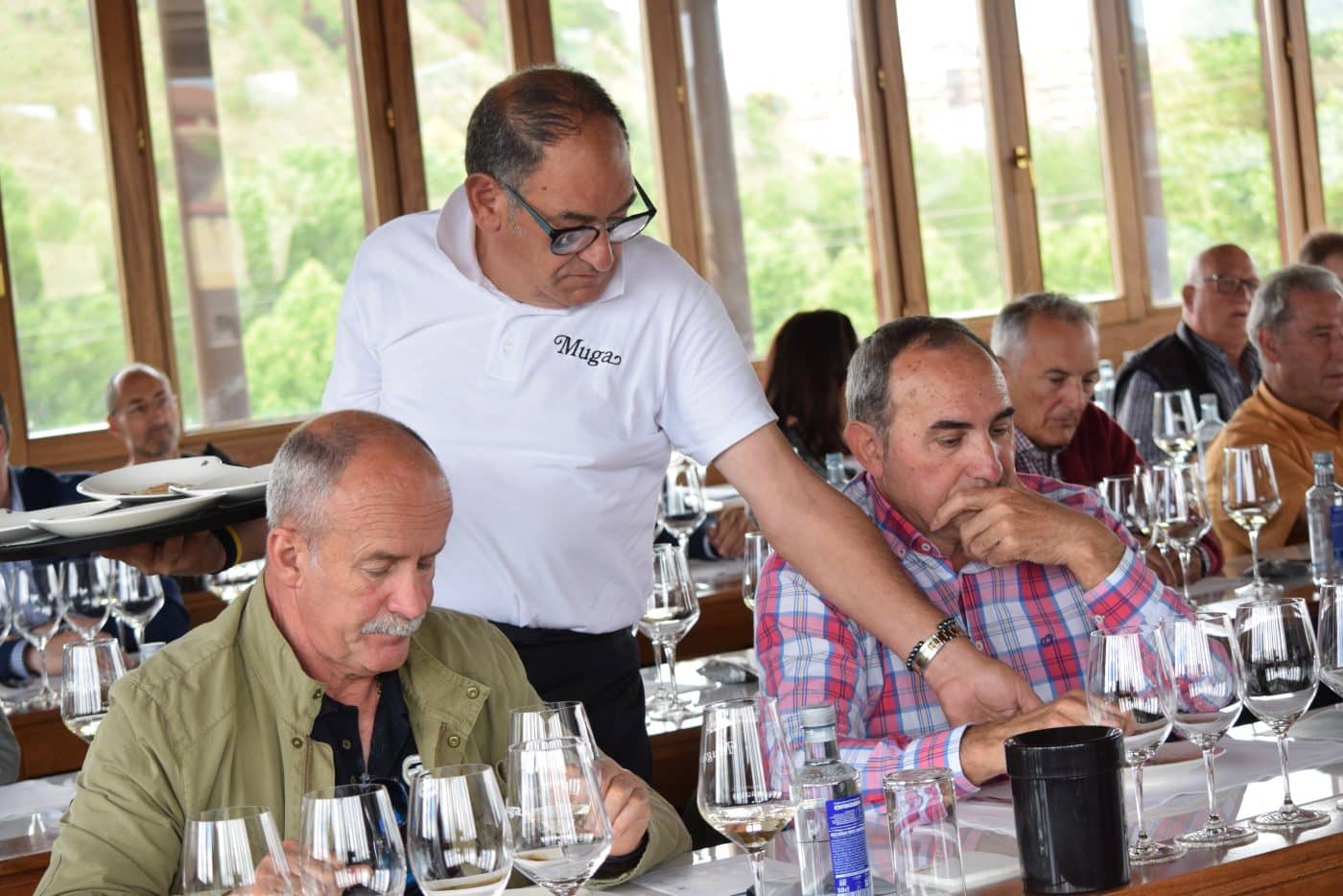 Los participantes en la cata, unos treinta en total, han podido degustar dos vinos blanco, dos rosados y dos tintos maridados con diferentes platos cocinados en Muga: Muga Blanco y Flor de Muga Blanco Reserva con un carpaccio de langostino con foie curado; Muga Rosado y Flor de Muga Rosado, con alcachofa confitada en aceite de oliva virgen extra y para finalizar Muga Selección Especial y Prado Enea Gran Reserva con pochas a la riojana y una tabla de quesos.