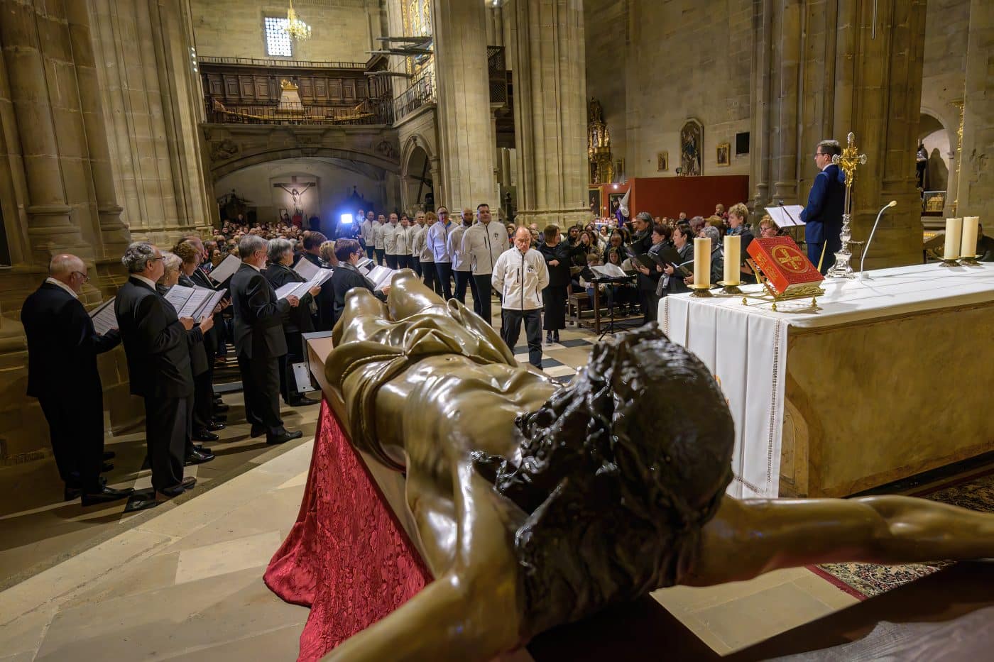 Haro ya vive desde sábado la Semana Santa. Será a partir del miércoles cuando tendrán lugar las procesiones propias de esta semana de recogimiento, pero la parroquia de Santo Tomás ha sido el escenario del acto de apertura, con el tradicional Pregón de Semana Santa, organizado por la Coral Polifónica de Haro, que ha estado acompañada por el coro infantil.