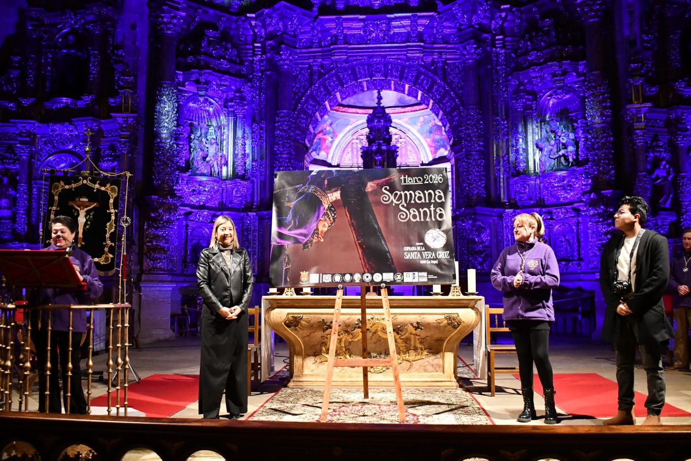 La encargada de conducir el acto fue Gloria María Martínez, de la Cofradía de la Santa Vera Cruz, que trazó un recorrido por el esfuerzo colectivo que sostiene esta celebración en la ciudad jarrera. Durante su intervención, subrayó el “afán” constante de la cofradía por mejorar la Semana Santa y seguir promocionando este evento cultural y religioso que “tanto significa para Haro”, destacando el crecimiento e implicación que ha ido consolidando en los últimos años.