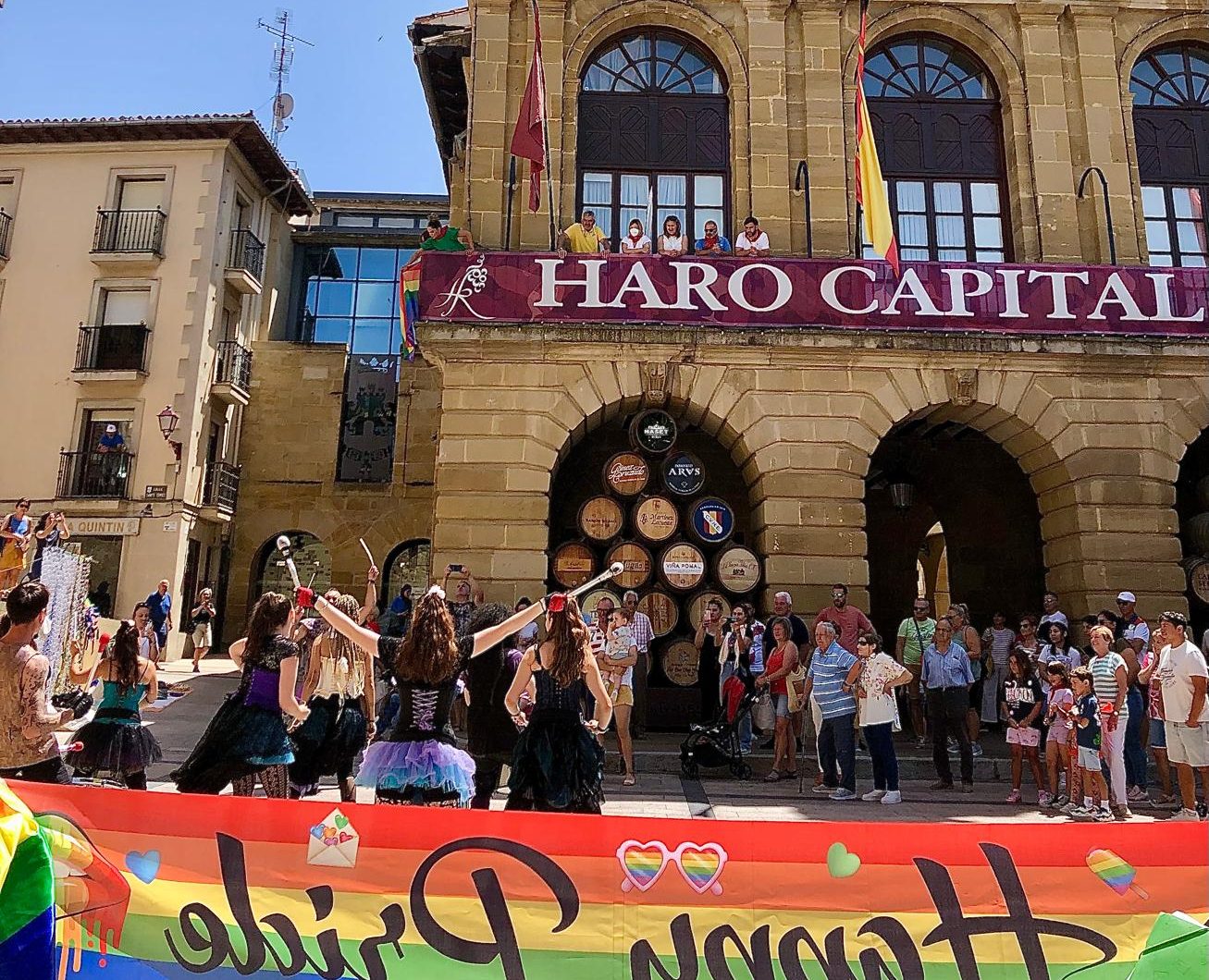 Por la noche, a las 22:00 horas, el Ayuntamiento de Haro se iluminará con los colores de la bandera del Orgullo, y desde esa misma hora hasta las 03:00 horas, se habilitará un Punto Violeta en los arcos del Ayuntamiento.