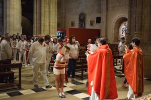 La misa en honor a San Pedro, por la pandemia del coronavirus que obligó a suspender la Batalla del Vino, se ha celebrado en la parroquia de Santo Tomás