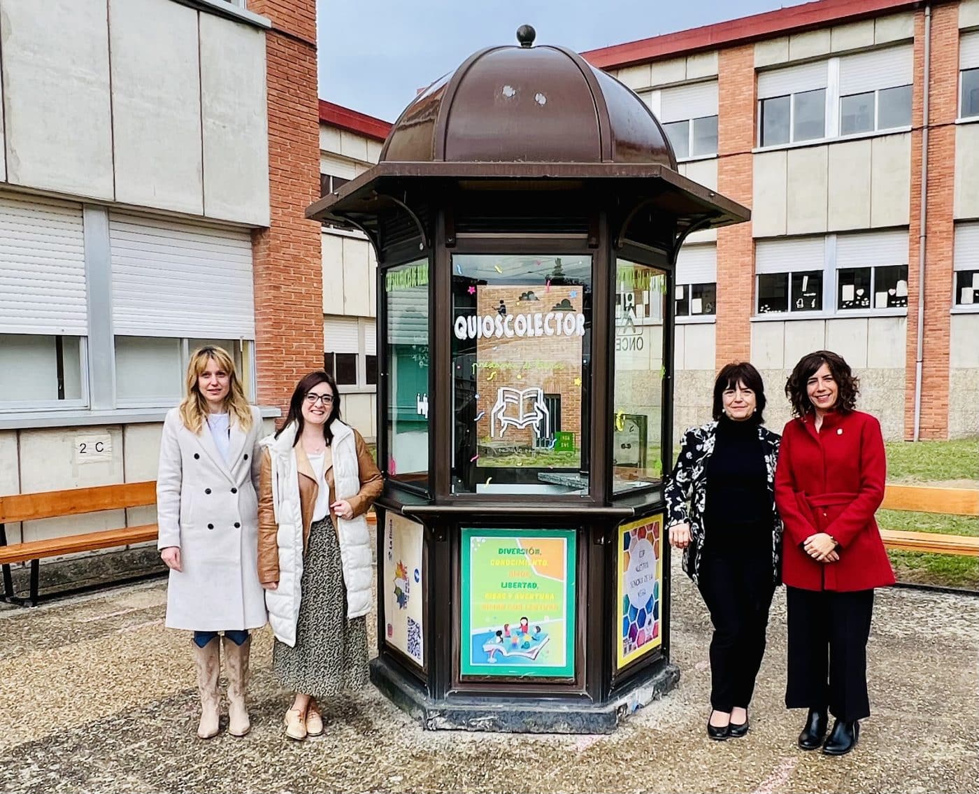 Este viernes, la alcaldesa de Haro, Laura Rivado, junto a la directora técnica de la ONCE en La Rioja, Sheila Cuervo, y las directoras de los centros educativos públicos de Haro, Valvanera Pérez (Colegio de la Vega) y Estibaliz López de Abechuco (Colegio San Felices), han inaugurado el primer ‘quiosco lector’ de la ciudad de Haro. Esta iniciativa cultural, abierta a todos los ciudadanos, tiene como objetivo fomentar la lectura y el intercambio de libros.