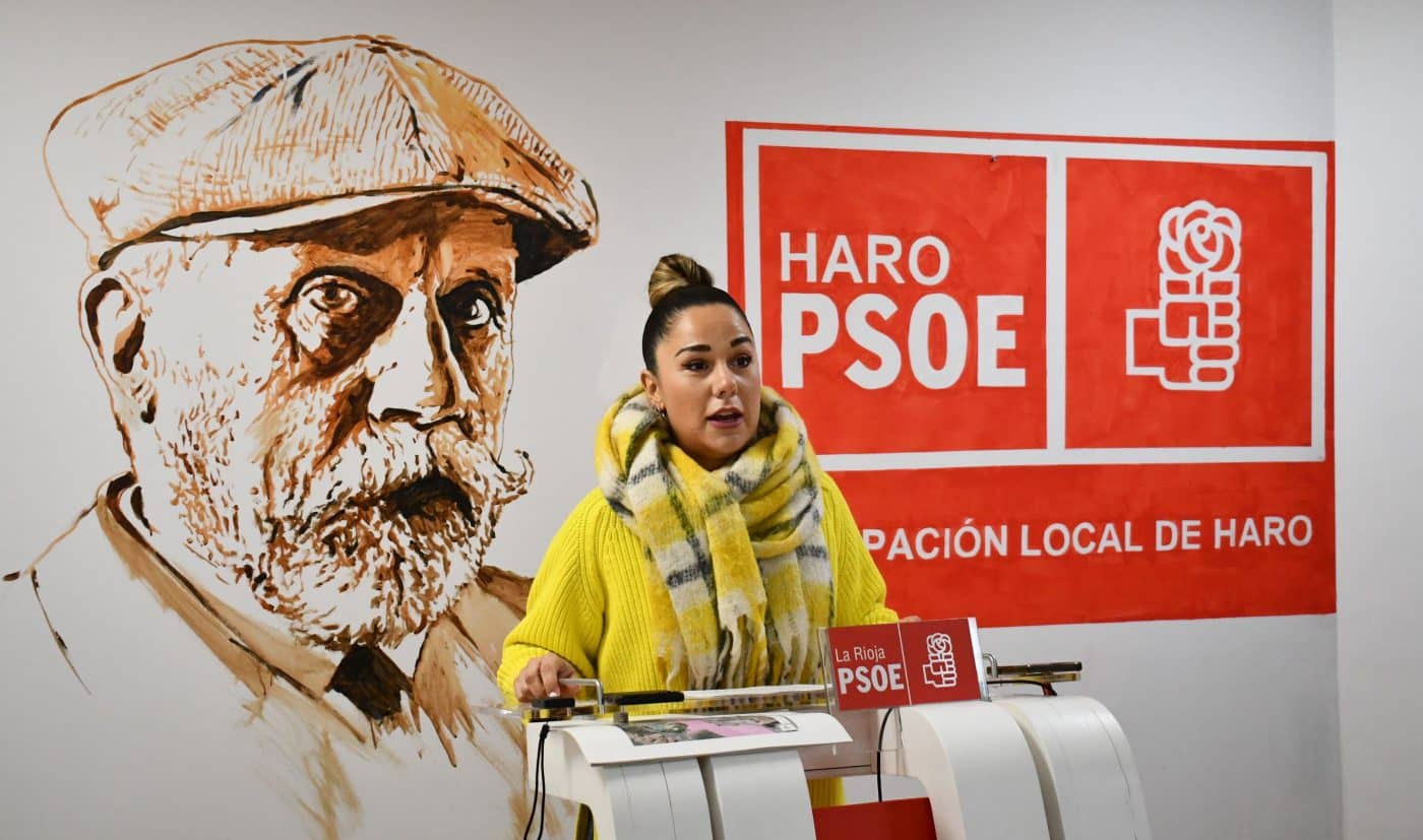 La bandera se ha colocado en el balcón sobre la estatua de la Batalla del Vino. Entre otras actividades de la jornada, por la noche y de madrugada, se habilitará un ‘punto violeta’ en los arcos del Ayuntamiento de Haro.
