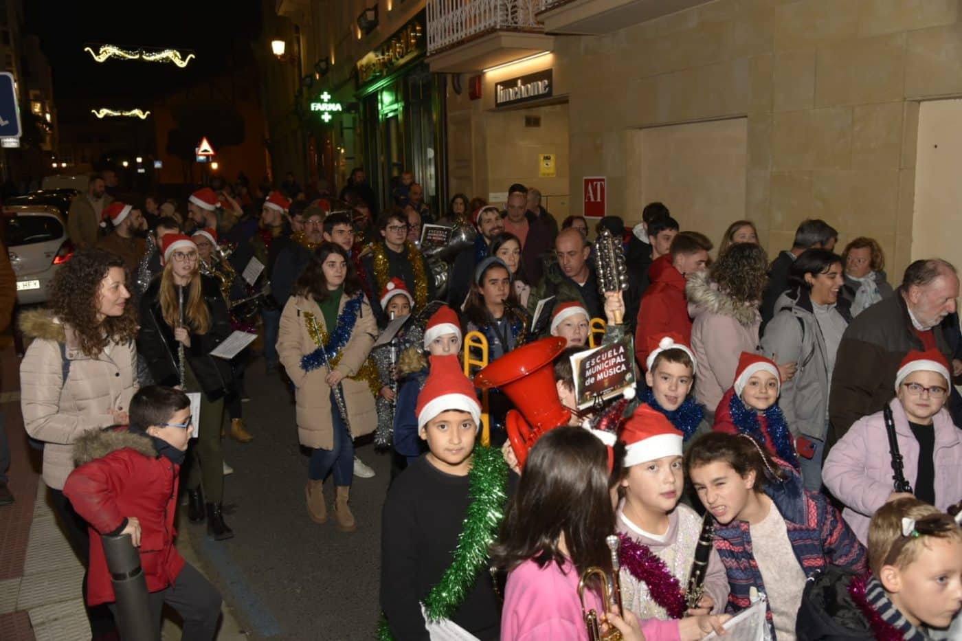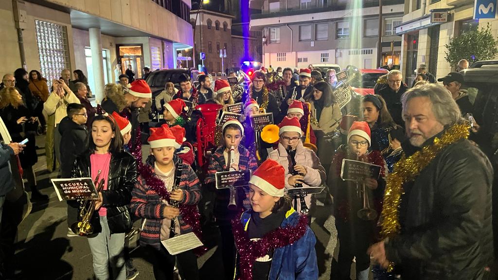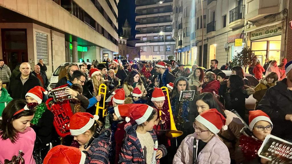 Antes de la llegada de Papá Noel este sábado, una animada ronda navideña con alumnos de la Escuela Municipal de Música recorrió las calles de Haro este viernes al ritmo de villancicos