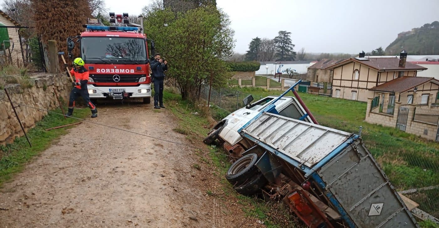 Varios particulares han comunicado a SOS Rioja el cuelco de una camioneta en un camibo del Barrio de la Estación, en el paraje ‘Cantarranas’ de Haro.
