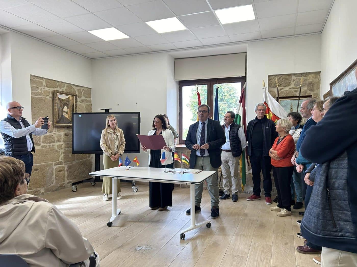 Los alcaldes Gerardo Cueto y Karine Desmoulin renovaron el juramento de hermanamiento firmado en 2007 | Foto: Ayuntamiento de Briones