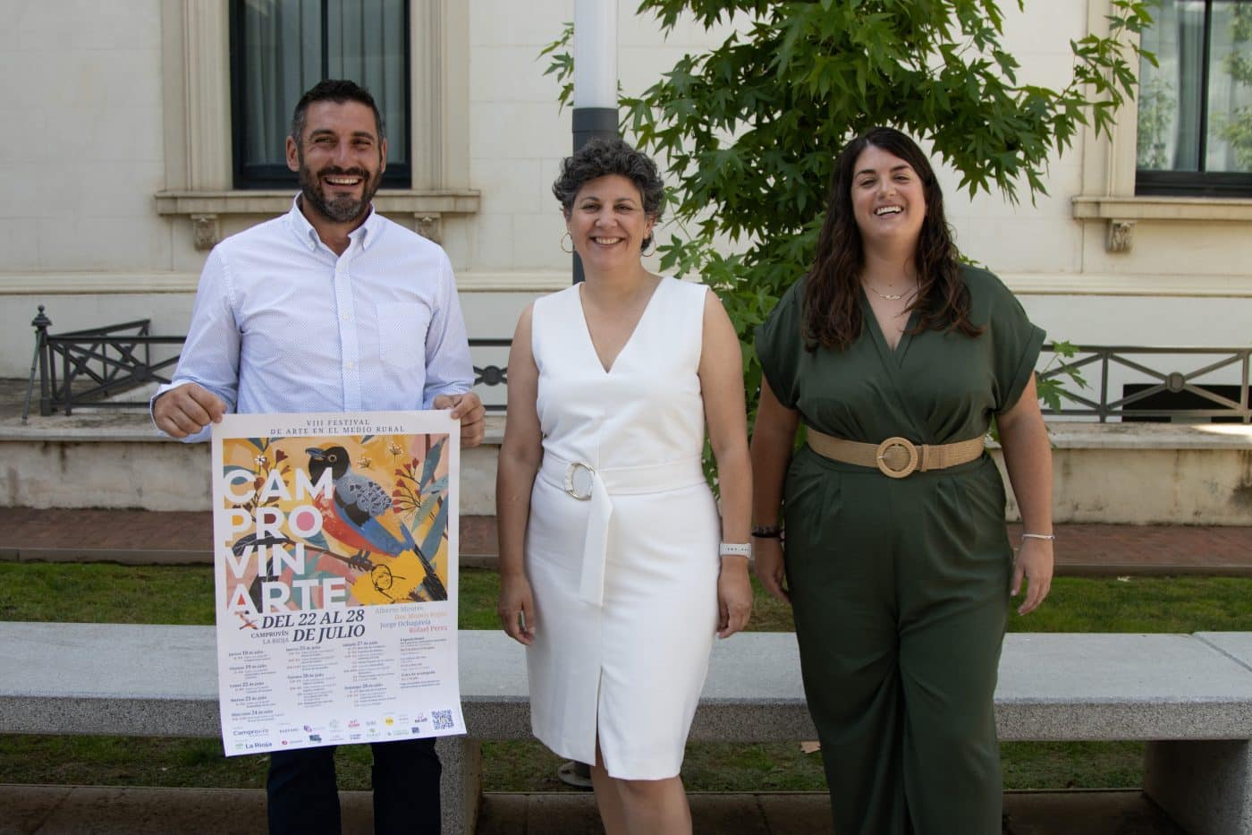 La directora general de Turismo y Promoción Territorial, Virginia Borges, junto al alcalde de Camprovín, Jon Anguiano, y la directora del festival, Celia Fontecha, han presentado la VIII edición de Camprovinarte. Con el objetivo principal de acercar el arte y la cultura contemporánea al medio rural, el Ayuntamiento de Camprovín pone en marcha una nueva edición de Camprovinarte, una cita ya consolidada y respaldada por el Gobierno de La Rioja, “que ha logrado, a través del arte, generar un interés turístico sostenible y comprometido con el territorio”.