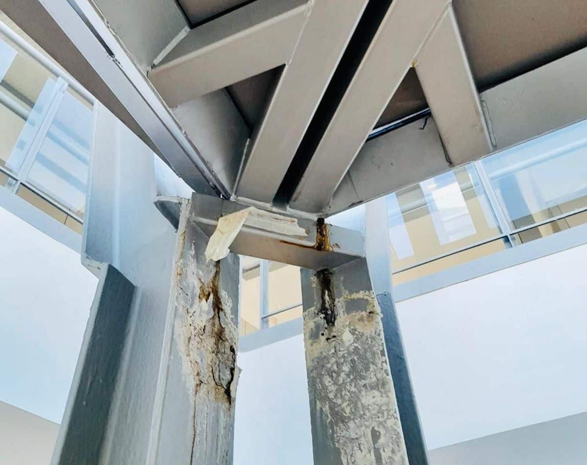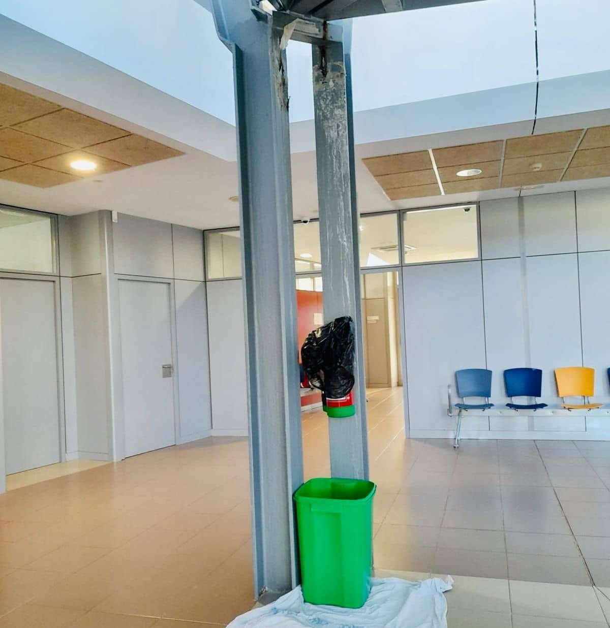 CSIF también alerta de los “peligros que sufren trabajadores y usuarios”, ya que “a simple vista se puede observar cómo alguna de las columnas de metal que sustentan parte de la estructura están afectadas”.