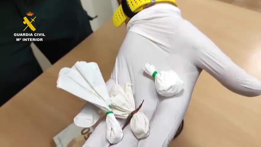 Una vez interceptado, se procedió a su identificación y a preguntarle por lo que había ocultado. Respondió de manera incongruente, evasiva y contradictoria, mostrando un estado de nerviosismo que levantó las sospechas de la fuerza interviniente. Amparándose en la Ley Orgánica de Seguridad Ciudadana 4/2015, los agentes realizaron un cacheo superficial y registraron sus pertenencias, hallando en su zona pélvica un bote con 17 pastillas y media de éxtasis. En su riñonera ocultaba 6 gramos de speed, 1,6 gramos de ketamina y 125 euros en billetes fraccionados de distintos valores.