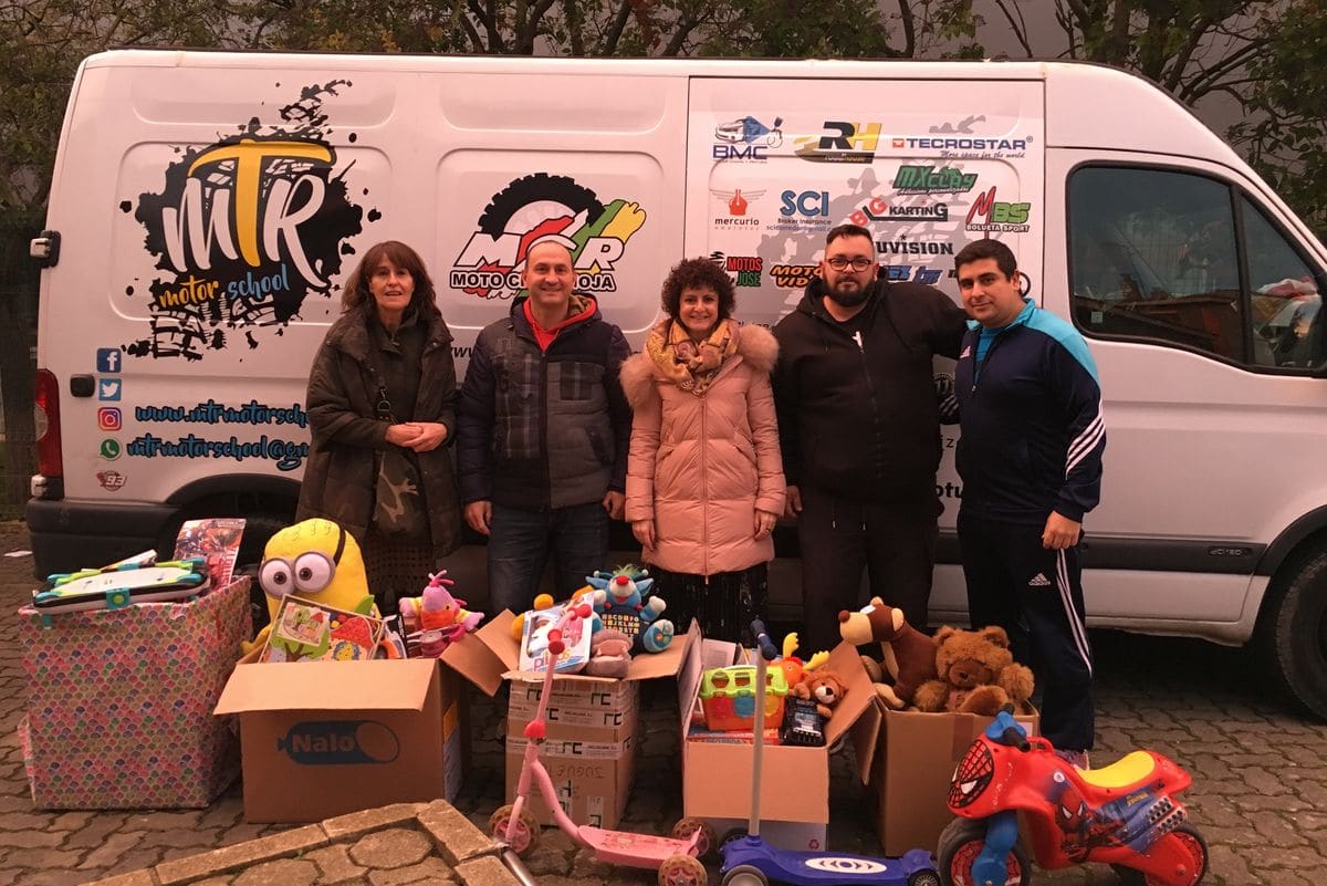 MTR Mototurismo La Rioja entrega juguetes recogidos en la ‘papanoelada’ motera a los niños de La Cometa
