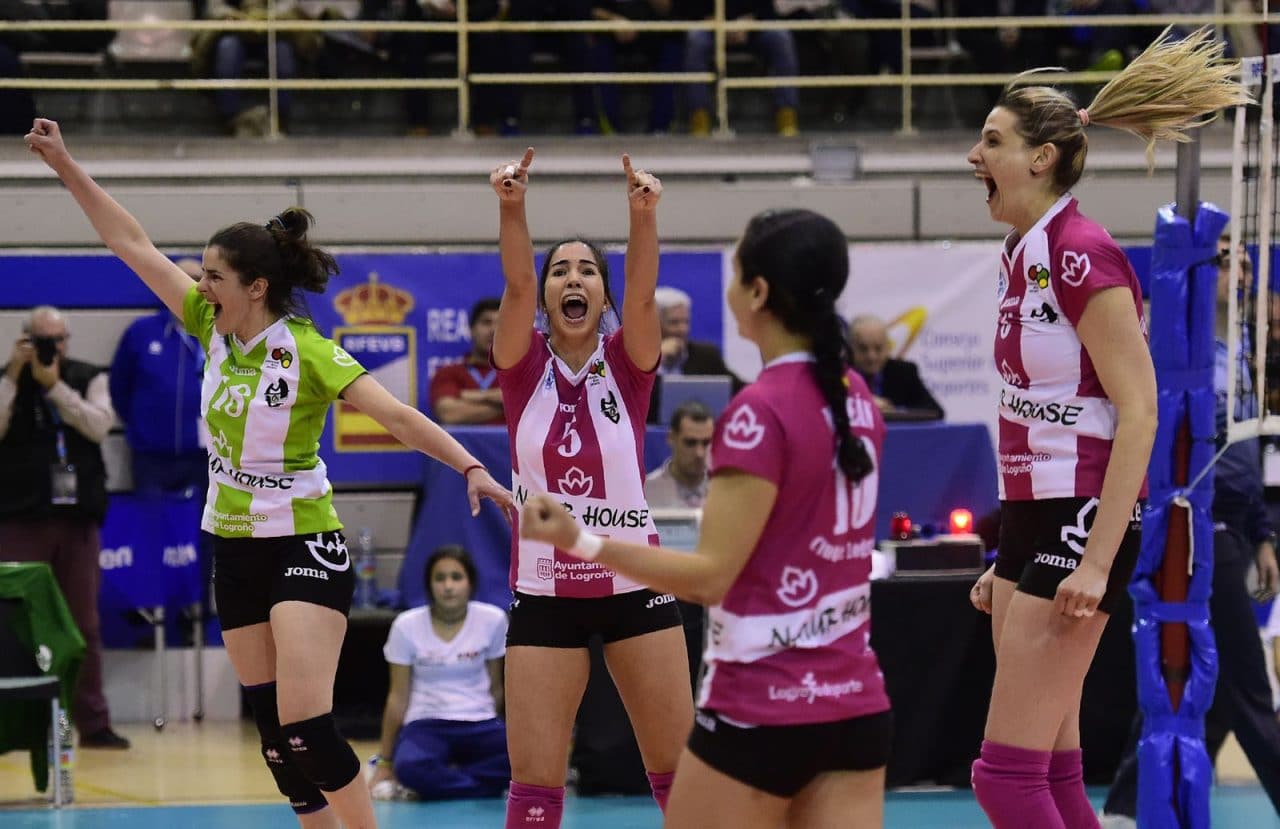 Amelia Portero, en el centro de la imagen con el dorsal número 5, celebra un título de Copa | Foto: RFEVB