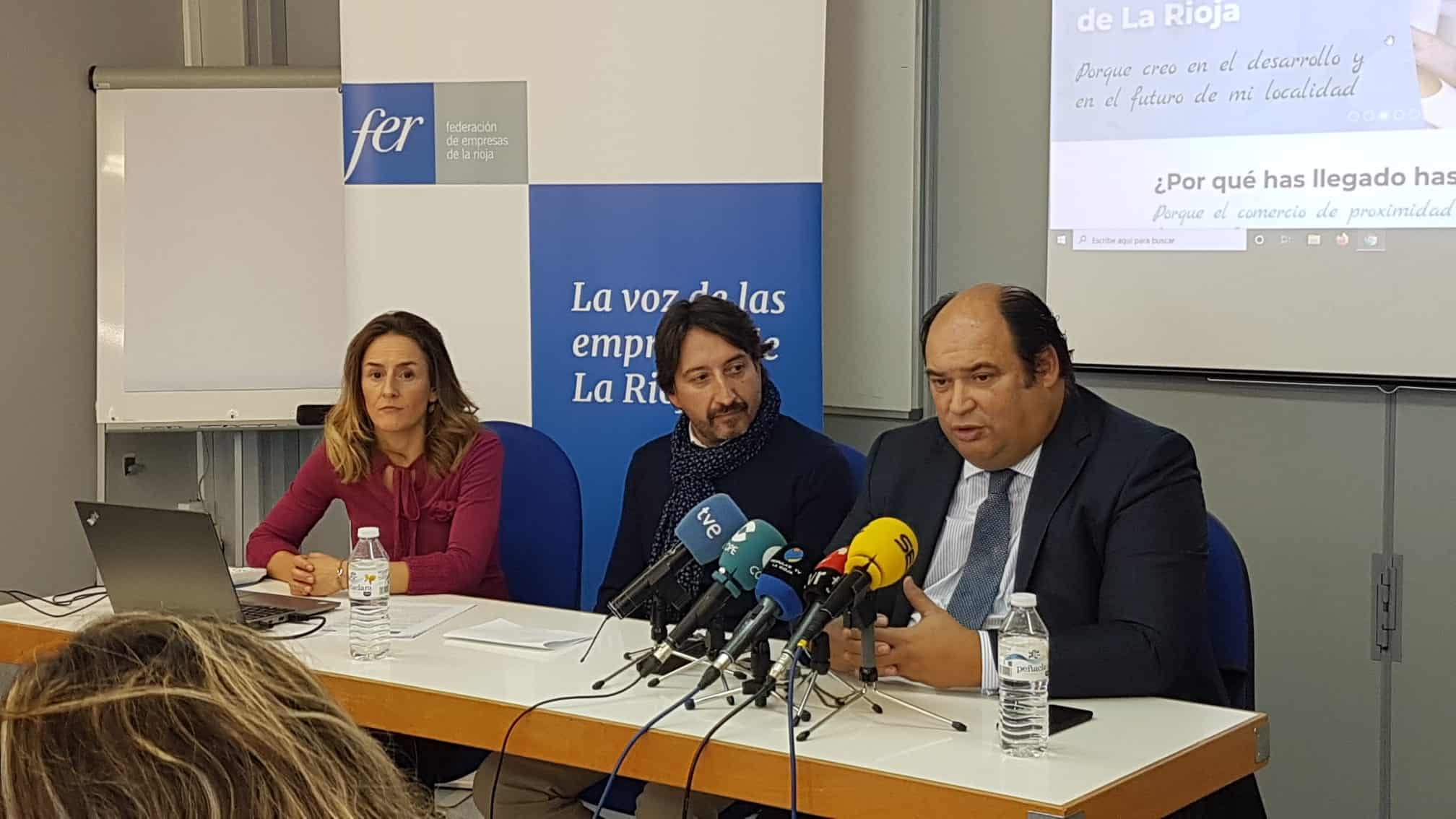 El presidente de FER Comercio, Fernando Cortezón, ha presentado esta novedosa iniciativa, acompañado por el director gerente de ADER, Fernando San José, y la secretaria general de FER Comercio, Adelaida Alútiz.