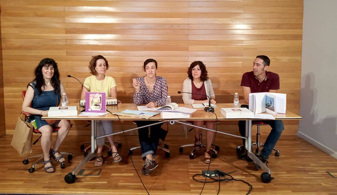 En rueda de prensa celebrada en la Casa de los Periodistas de Logroño, la ilustradora Ainara G. Álava, y S. H. López-Pastor, de Literaria Kalean; junto a Regina Martínez de Acolchados Margo, contando también con Ana Belén Martínez Sánchez, alcaldesa de Villamediana de Iregua y Mila Díez, presidenta de Fademur Rioja han presentado la nueva colección de cuentos referidos a oficios de mujeres rurales de nuestra región que llevan como título genérico ‘Jairo y Lucía nos cuentan La Rioja’.