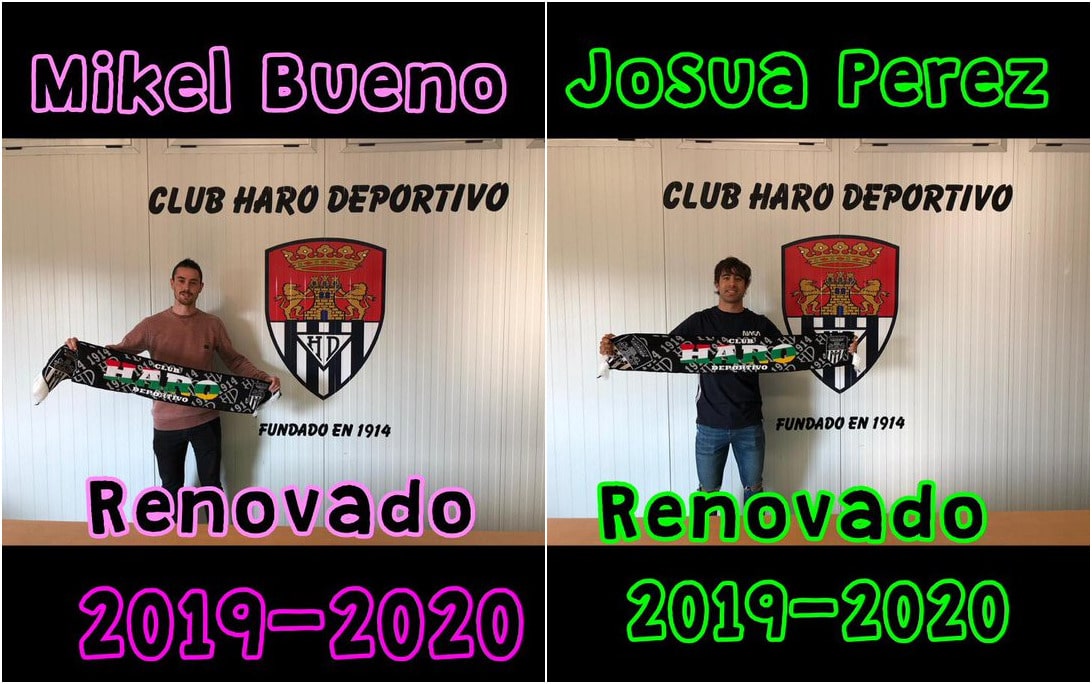 El Haro Deportivo ha hecho oficiales dos nuevas renovaciones. Se trata del delantero Mikel Bueno y del centrocampista Josua Pérez, otros dos jugadores que han terminado como titulares en el equipo que ha conseguido el regreso a la Segunda División B.
