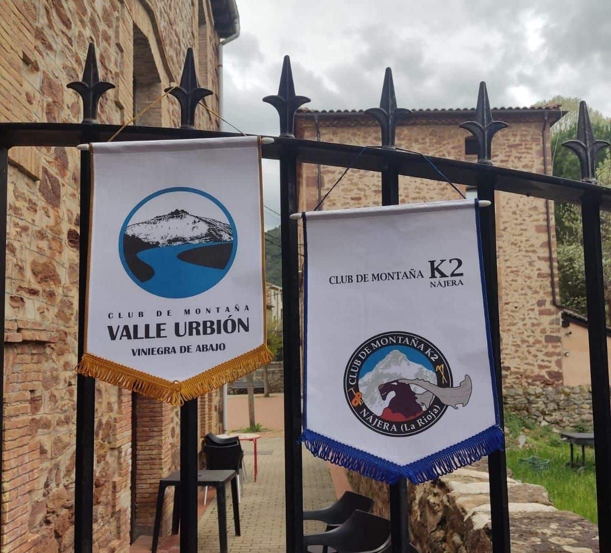Tras la sobremesa con un buen pacharán casero ofrecido por Ana, los presidentes de ambos clubes, Jesús “Chucho” (Urbion) y Carlos Agüera (K2), cumplieron con la tradición montañera y llevaron a cabo el intercambio de banderines bajo el aplauso de los miembros del K2, Valle Urbion y los habitantes de La Villa.