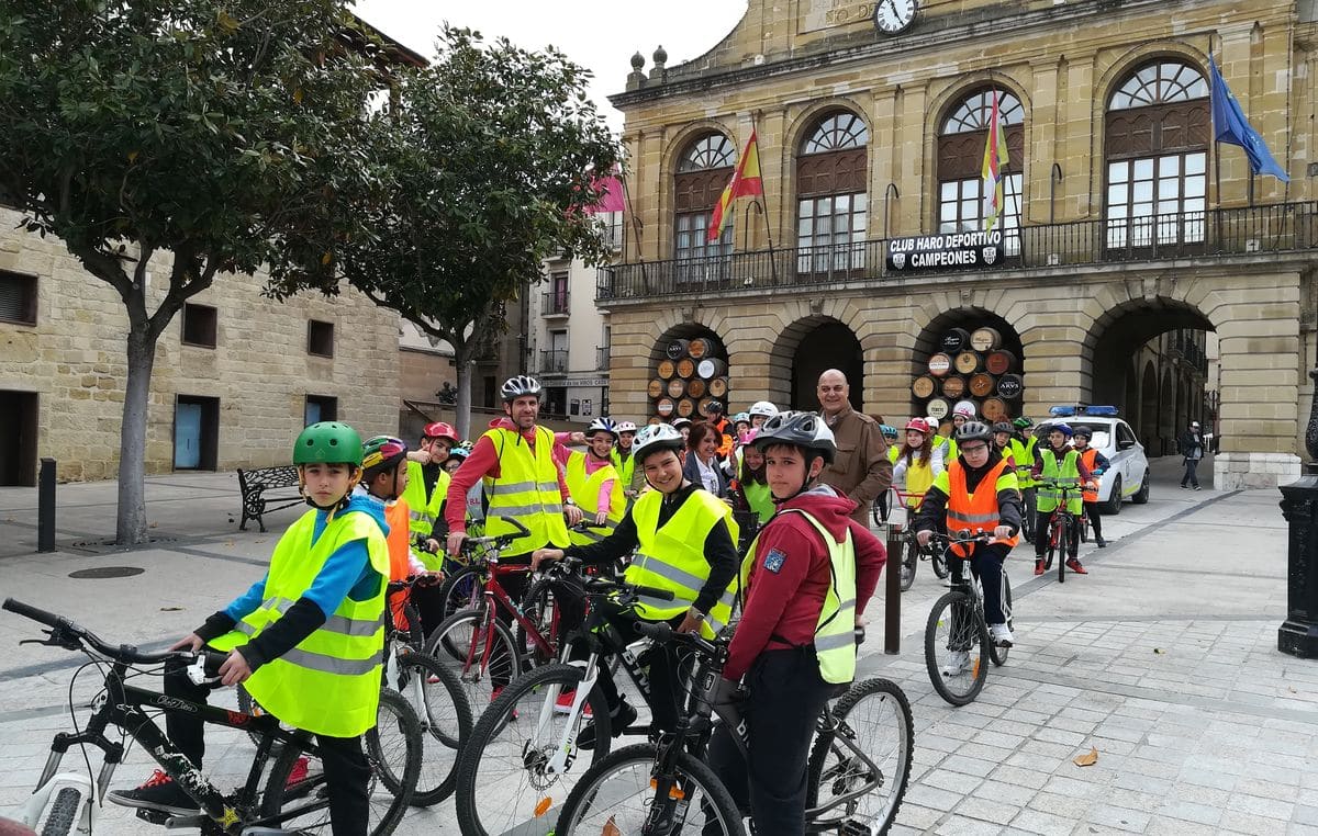 Acompañados por agentes de la Policía Local y por miembros de Protección Civil, los escolares han conocido de primera mano las normas básicas de circulación, a la vez que han disfrutado de un paseo por algunos de los lugares más emblemáticos de Haro. En la plaza de la Paz han podido charlar con el primer teniente de alcalde del Consistorio jarrero.