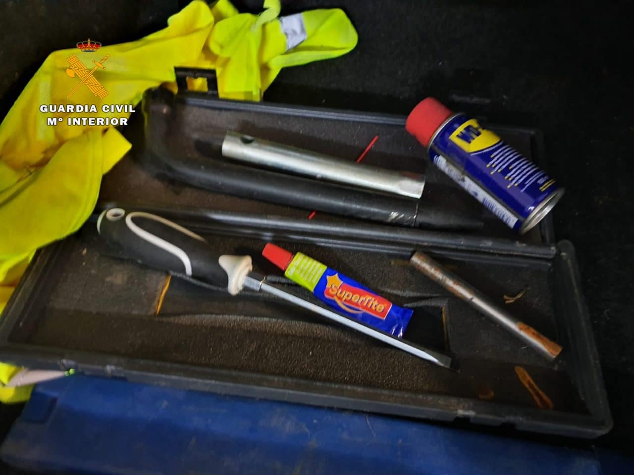 Durante el registro del vehículo se intervinieron tres Smartphones para su estudio, 465 euros en efectivo y un bote de pegamento para marcar las puertas de las viviendas y advertir así de la presencia o no de moradores en el interior.