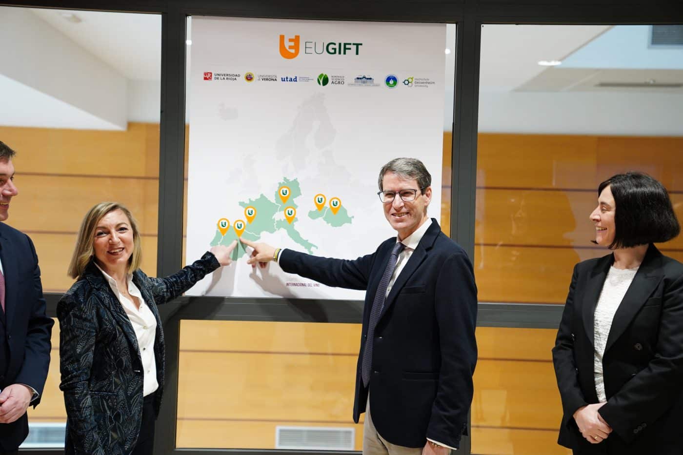 Impulsada por la Iniciativa de Universidades Europeas de la Comisión Europea y financiada principalmente por el programa Erasmus+, la alianza universitaria EU-GIFT está compuesta por siete universidades de España, Francia, Hungría, Alemania, Italia, Rumanía y Portugal lideradas por la Universidad de La Rioja con el fin de impulsar la sostenibilidad y la innovación en la producción de alimentos y bebidas con identidad geográfica a través de titulaciones y áreas de investigación compartidas.