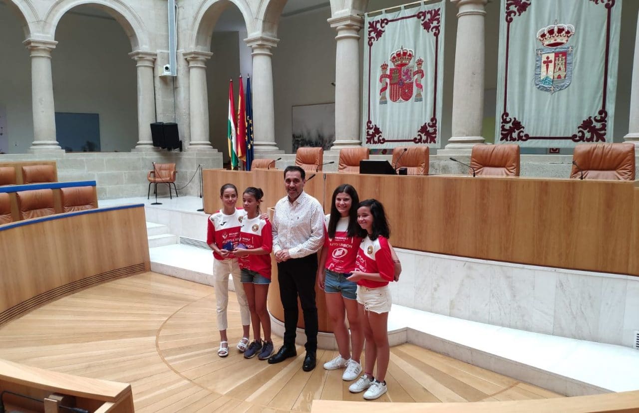 El presidente del Parlamento de La Rioja ha recibido al equipo riojano de pelota a mano femenino que se coronó recientemente como campeón de España en categoría infantil y alevín