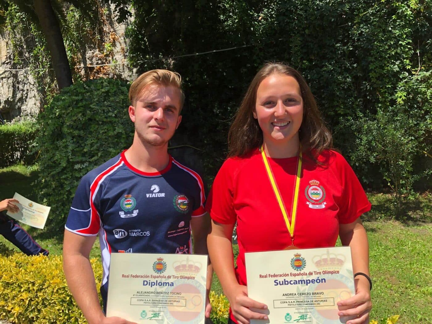 Andrea realizó una gran primera fase el sábado, finalizando segunda y que repitió el domingo, manteniendo la segunda plaza y por tanto medalla de plata en Pistola Aire Cadete, mientras que Alejandro que participaba en Pistola Aire Juvenil, también realizó una buena actuación el sábado, donde acabó quinto, pero el domingo ha sido un poco más irregular y al final ha finalizado en sexta posición y con diploma.