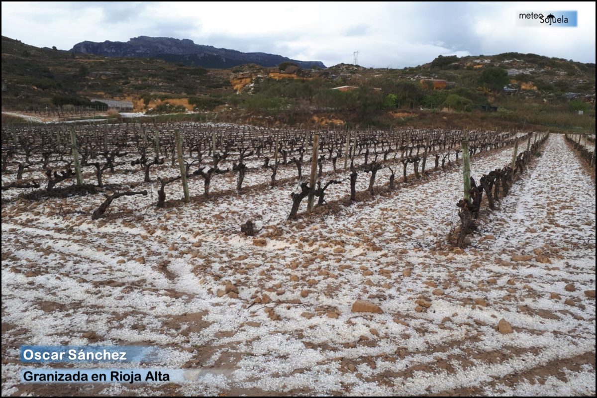 En abril, aguas mil, y tiempo más propio del invierno que oficialmente ya nos dejó. Después de la nieve caída durante el viernes en varios puntos de La Rioja, La Rioja Alta se convirtió ayer en epicentro de tormentas y granizo que también afectó al viñedo, preocupación extra para viticultores y bodegas, junto a zonas también de la Rioja Alavesa.
