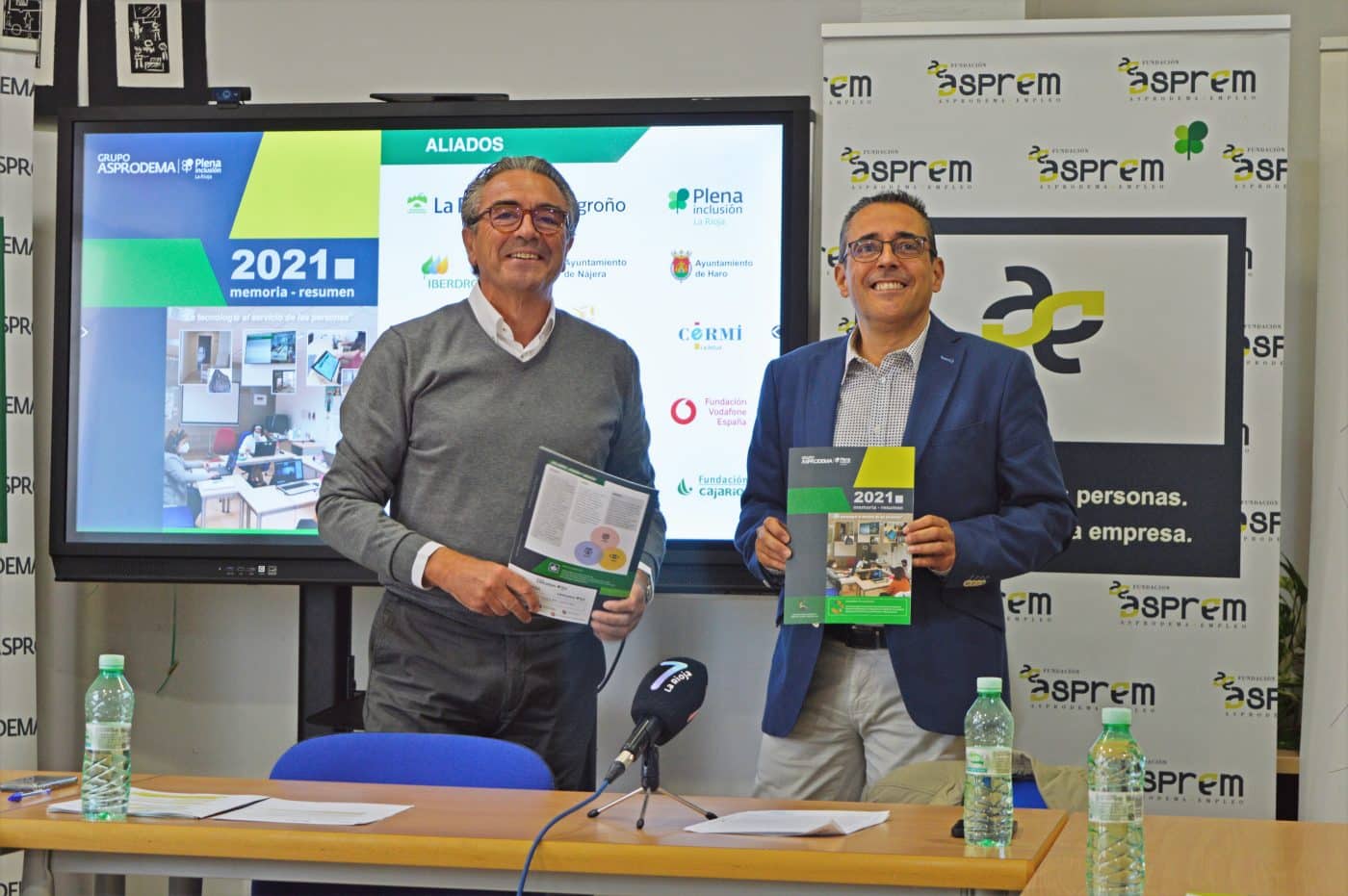 Este viernes, el Grupo ASPRODEMA ha informado de los resultados obtenidos entre 2021 y 2022 gracias a su actividad social en favor de las riojanas y riojanos con discapacidad intelectual, sus familiares y el conjunto de la sociedad riojana. Esta presentación ha estado a cargo de su nuevo presidente, Esteban Ferrero Martínez, y de José Ángel García Mera, Director General del Grupo ASPRODEMA.