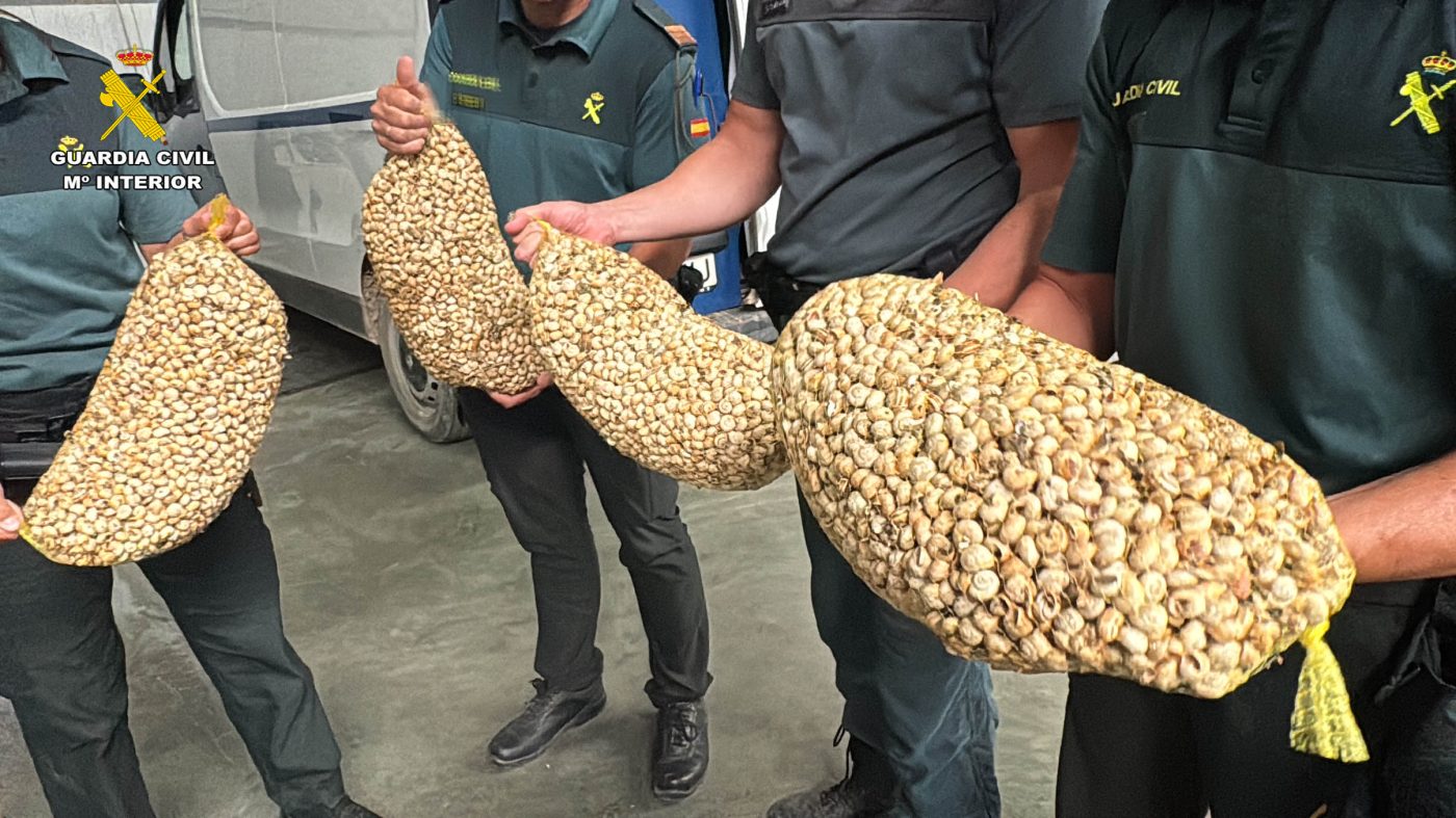 La Guardia Civil en La Rioja ha intervenido un total de 430 kilos de caracoles y caracolas silvestres que iban a ser transportados hasta la provincia de Albacete para su venta ilegal. El cargamento carecía de cualquier tipo de control sanitario, lo que suponía un grave riesgo para la salud pública.