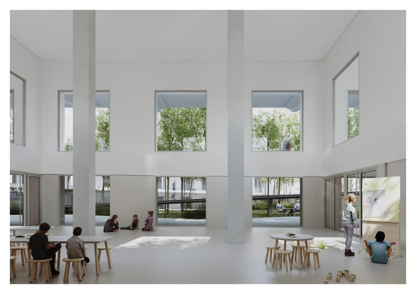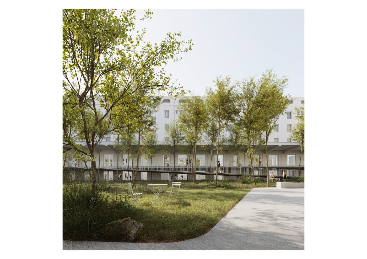 El nuevo jardín es un espacio verde ganado para la ciudad, protegido de vientos y utilizable por todos los ciudadanos. Pero es también el pulmón y el espacio aglutinante del nuevo centro cívico, como punto de encuentro de todos los usuarios de distintas generaciones.