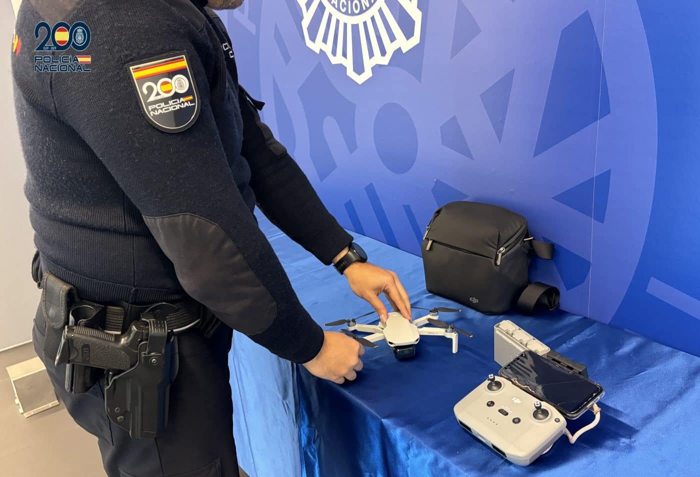 Los Agentes, integrados en el Dispositivo de Seguridad, detectaron durante la mañana del día 5 a las 12:15 horas una aeronave no tripulada en vuelo, un DRON DJI Mini2SE en las inmediaciones del Estadio de Las Gaunas, por lo que se tuvo que abortar la operación de despegue del helicóptero.