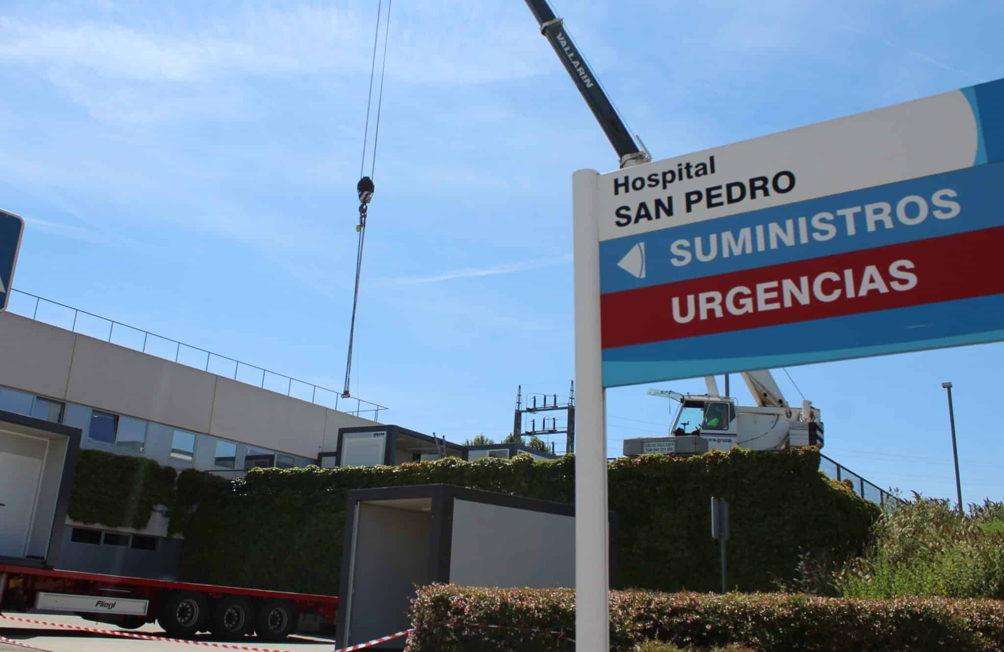 Esta mañana ha comenzado la instalación del módulo de 118 m2, anexo a las Urgencias del Hospital San Pedro de Logroño, que permitirá la ampliación de la zona de consultas y de tratamiento de pacientes de este servicio. Anunciada a finales de junio, esta estructura se desplegará de manera provisional hasta la edificación de la infraestructura definitiva cuando finalice la situación de pandemia.