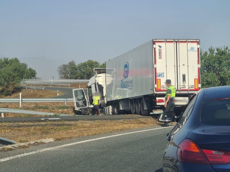 El vuelco del camión se ha producido en el kilómetro 75, a la altura de Zambrana, sentido Logroño