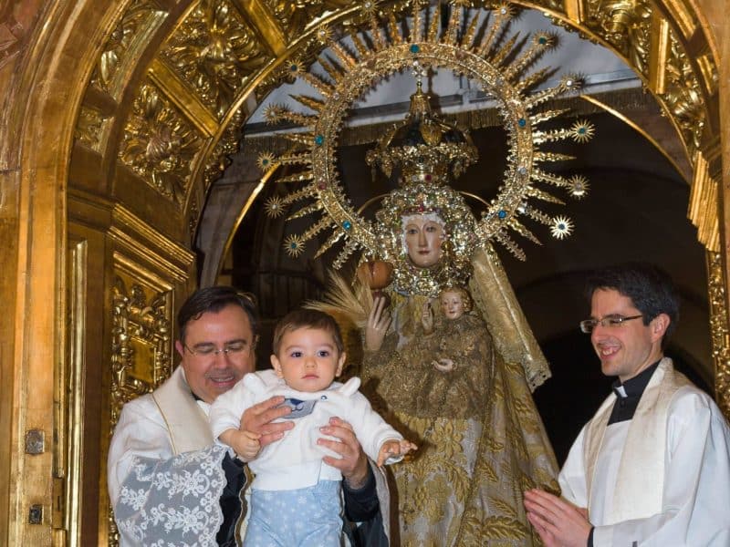 En total, casi 70 niños pasaron este domingo por el manto de la patrona jarrera con motivo de la celebración de Las Candelas