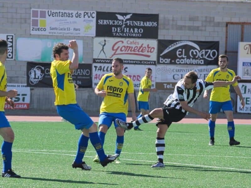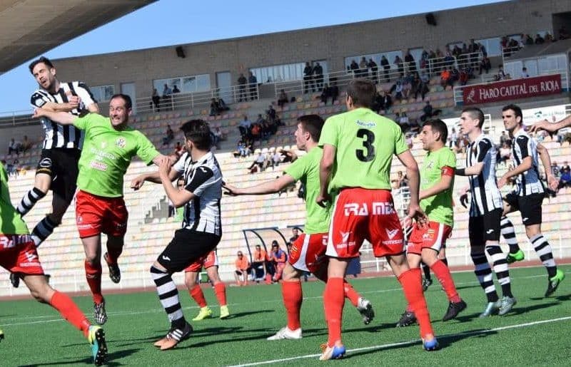 El Haro Deportivo mereció más, pero un gol de Zubiri y la expulsión por roja directa de Aimar pusieron algo de incertidumbre en el marcador (1-2). Antes de que Aimar viese la roja directa, el colegiado no vio un claro penalti sobre el atacante blanquinegro.