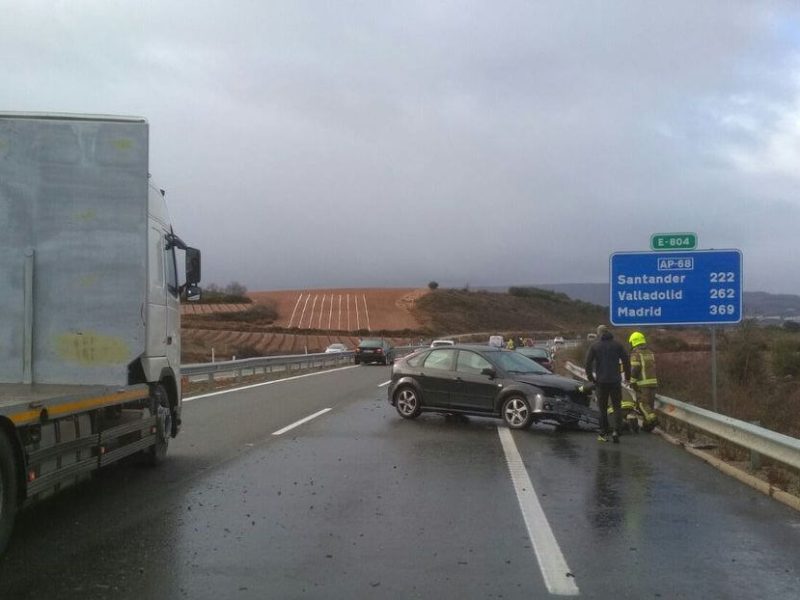 En la AP-68, a la altura de Navarrete, se ha producido un accidente múltiple por culpa de la lluvia y el granizo. 8 vehículos implicados en el suceso y dos personas han resultado heridas