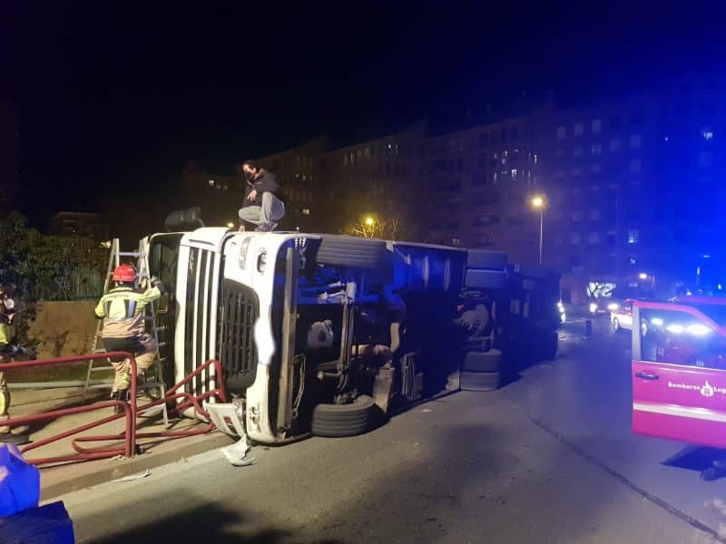 El conductor resultó herido leve y tuvo que ser rescatado por los Bomberos de Logroño. El accidente provocó importantes retenciones, el corte de la vía hasta las 1:30 horas y necesitó una grúa de gran tamaño para remolcarlo