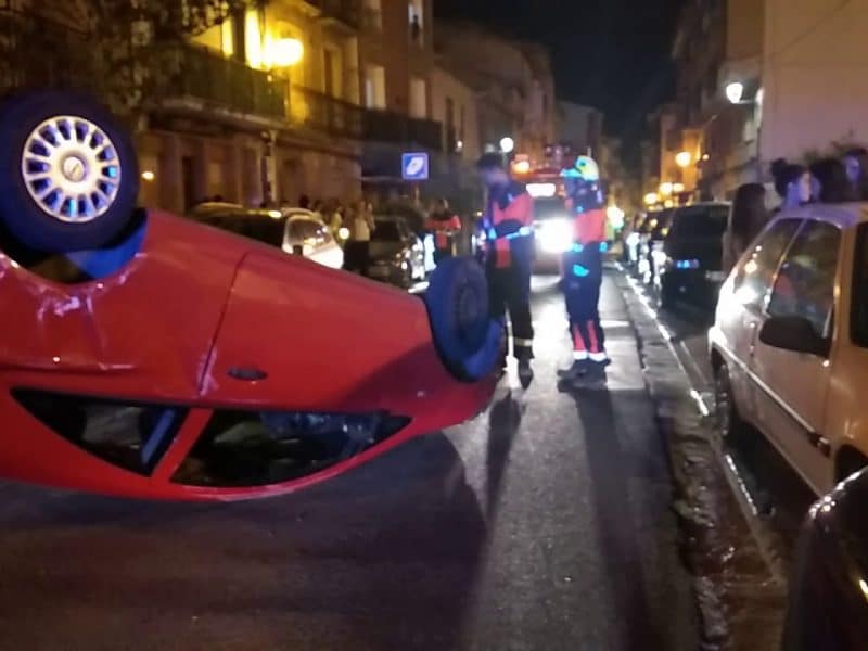 El conductor reconoce ante la Policía Local que el exceso de velocidad y un despiste provocaron el espectacular vuelco del coche en la calle La Ventilla de Haro