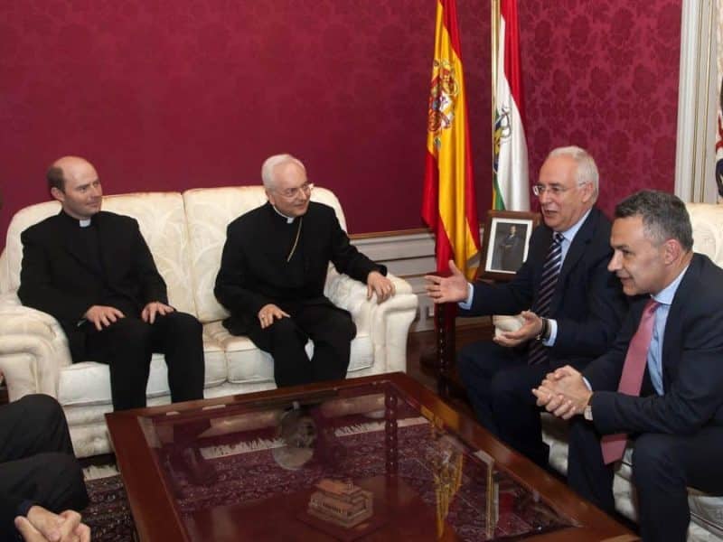 José Ignacio Ceniceros ha mantenido un encuentro con Mauro Piacenza, cardenal Penitenciario Mayor. Está previsto que presida una eucaristía este martes en Santo Domingo de la Calzada y asistirá en la Catedral al concierto del Coro Filarmónico Vaticano.