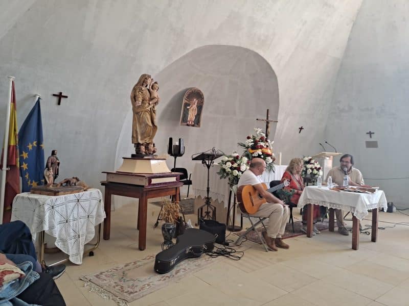 Tras la misa en honor a la Virgen de la Esclavitud, la ermita ha acogido un recital poética con Esther Novalgos y el guitarrista Juan Gurrea